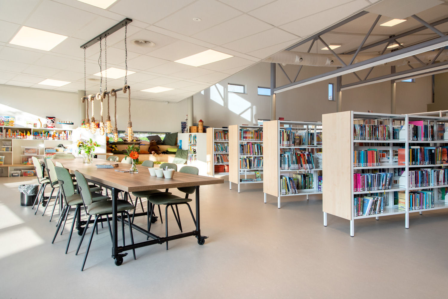 De plus, de nombreux espaces de travail ont été ajoutés et la création d'un " fab-lab" permet aux enfants d'explorer et de découvrir le monde. La bibliothèque souhaitait combiner des espaces avec des bandes-dessinées et des jeux de société. Ce qui était un challenge au début, semble fonctionner parfaitement maintenant que les usagers s'y sont familiarisés.