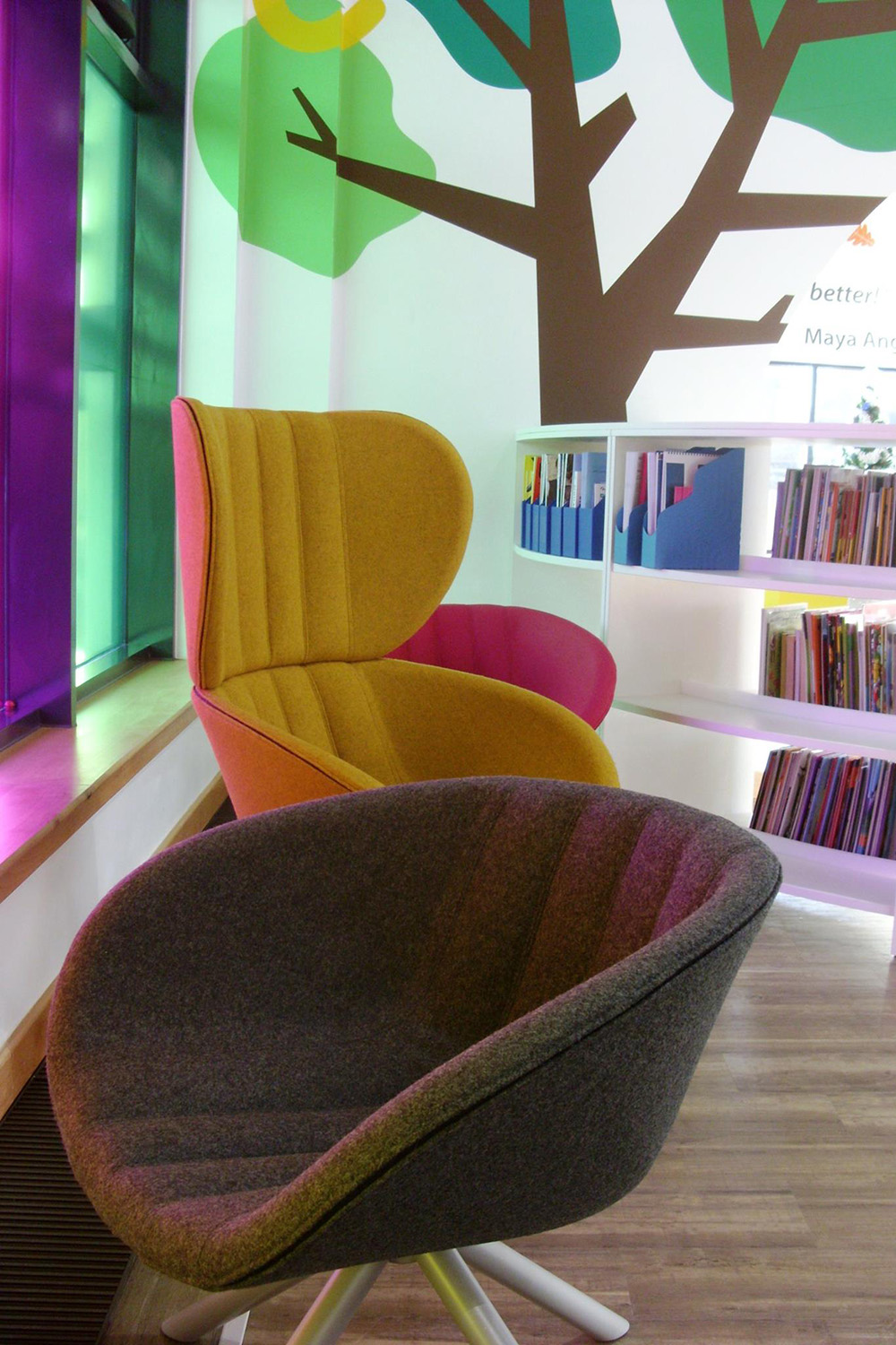 La bibliothèque conçue et aménagée par Thedesignconcept est entièrement accessible et compte plus de 3 000 nouveaux ouvrages.