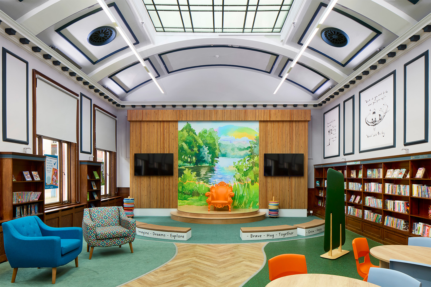 Avec une section entière du bâtiment consacrée à la créativité, à la robotique, à la programmation informatique et à l'impression 3D, la bibliothèque s'adresse désormais à un nouveau groupe d'utilisateurs. Associant ses éléments patrimoniaux et son mobilier moderne, la bibliothèque a été restaurée pour aussi permettre aux gens de se rencontrer et de s'essayer à l'artisanat ou à des technologies nouvelles telles que les casques de réalité virtuelle.