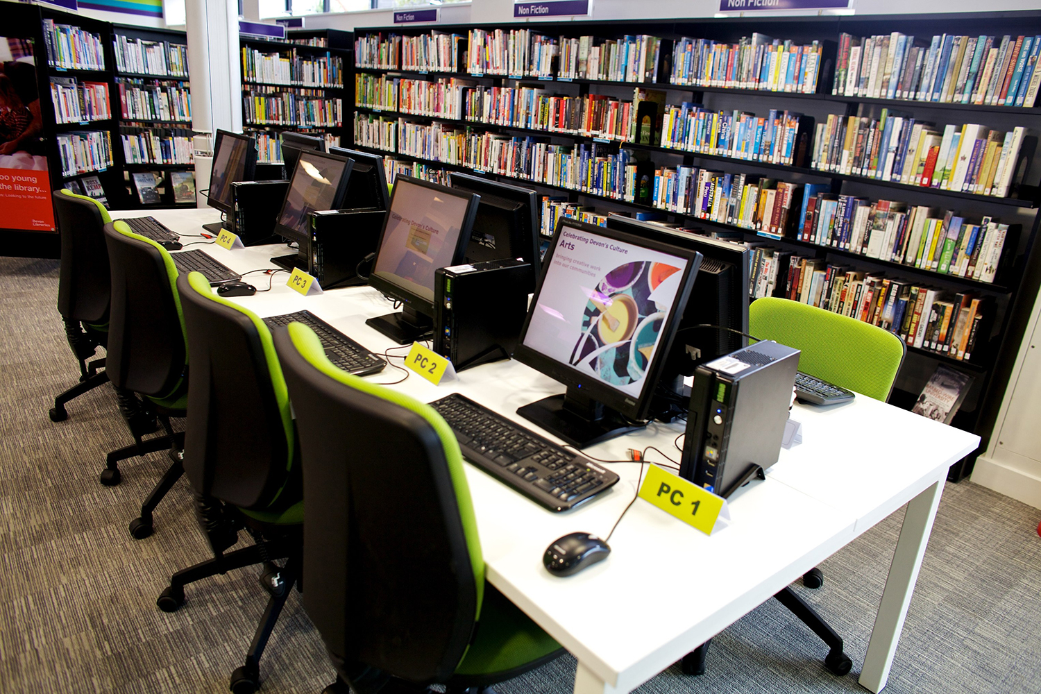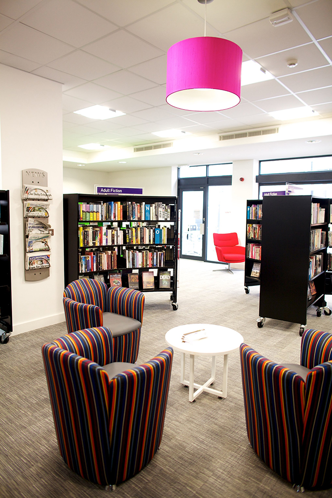 The new library is four times the size of the town’s previous one and the building is built in line with the latest in environmental design. BCI’s UK team have been involved in the design process and were responsible for the design and supply of all the graphic and signage for the building including bespoke made Braille signage.