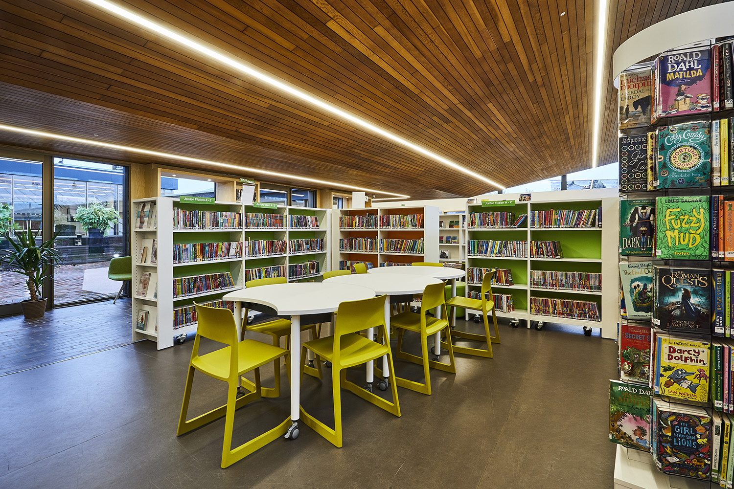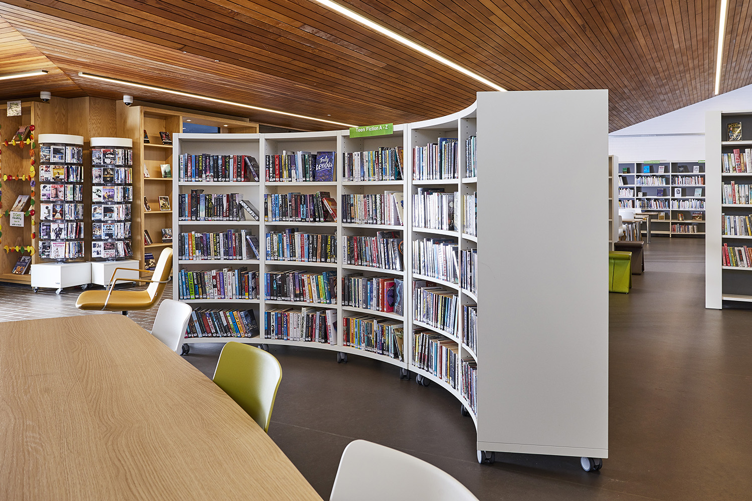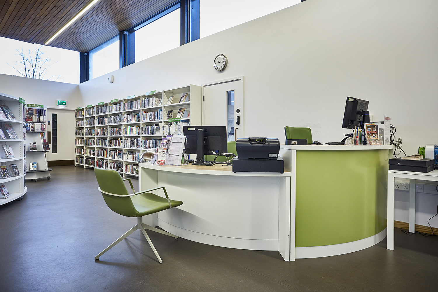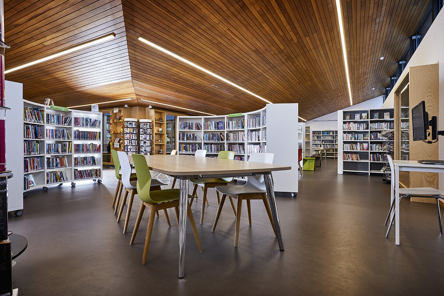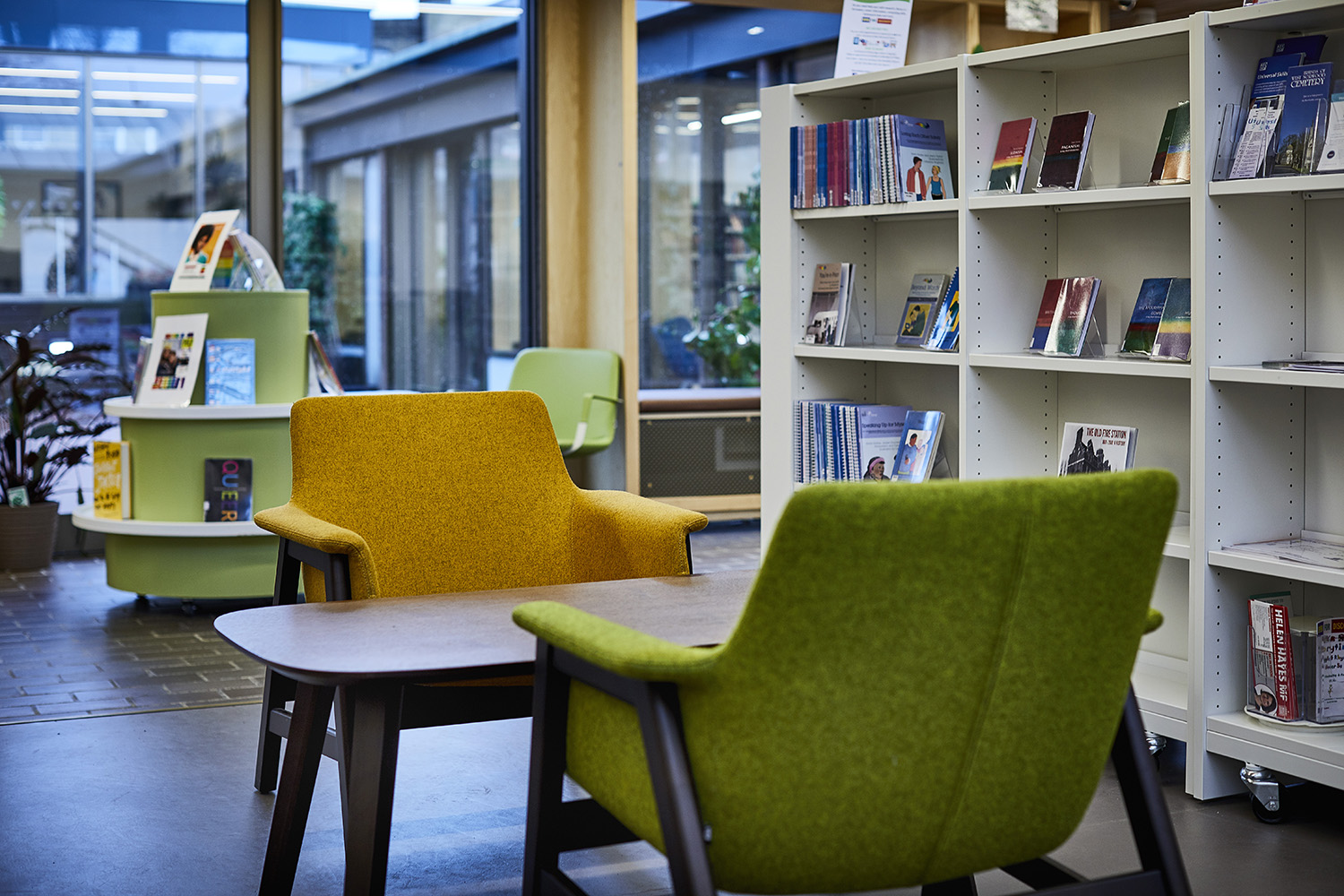 Le mobilier moderne apporte une élégante touche de design à la bibliothèque, donnant ainsi l’impression de se sentir « comme chez soi ».