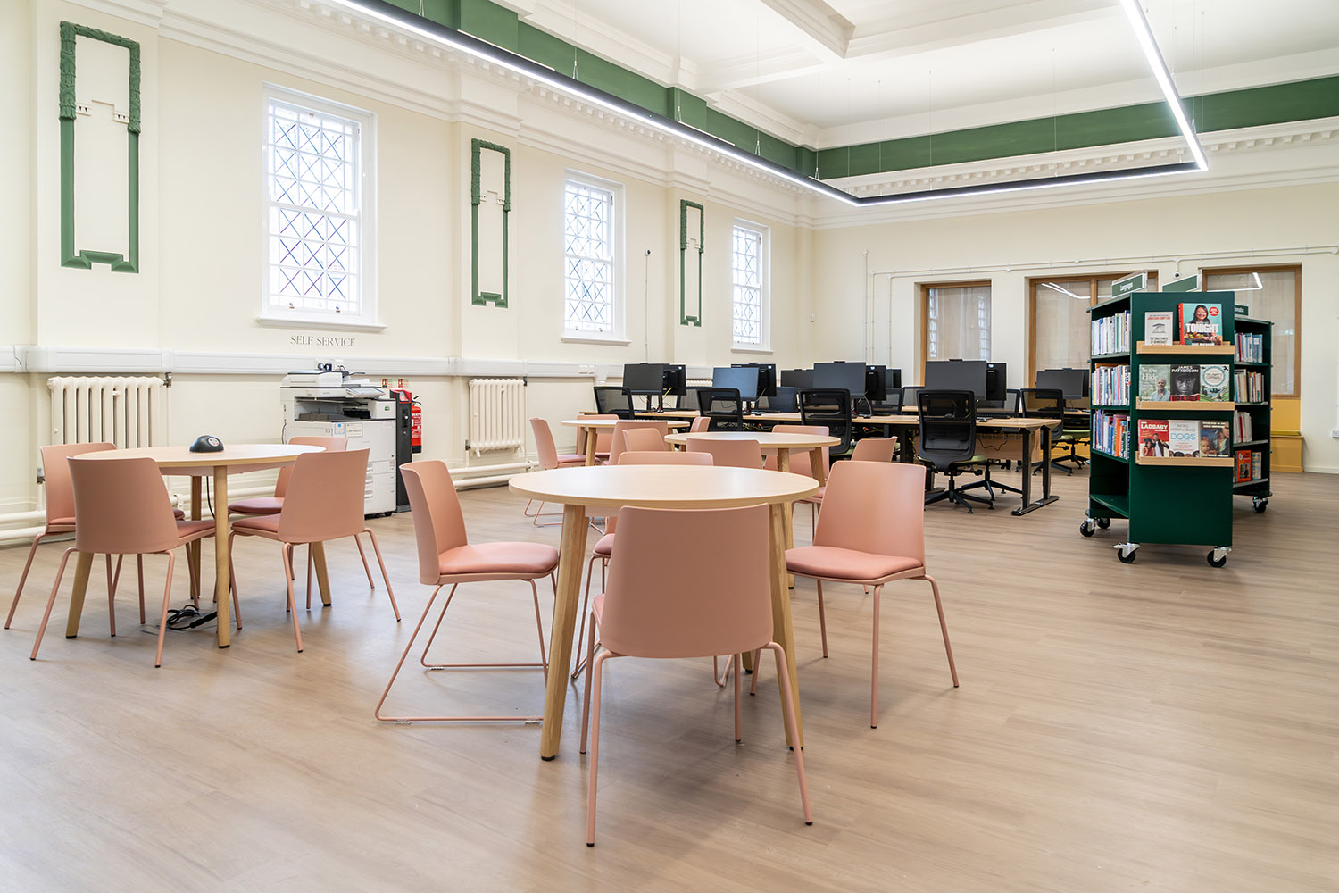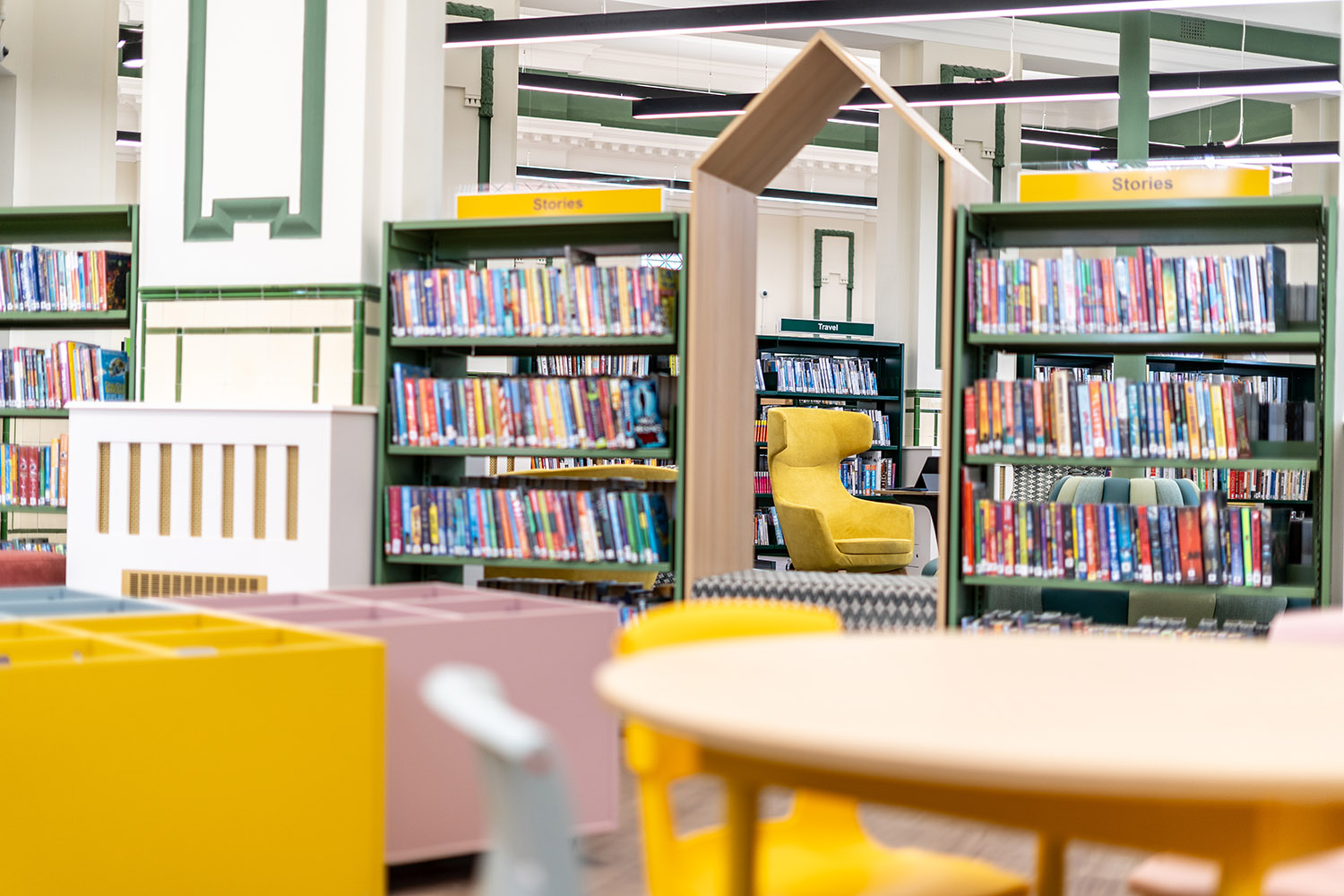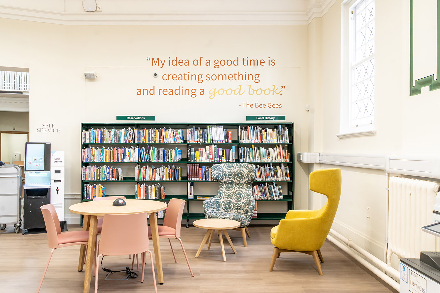 La Bibliothèque de Chorlton est un exemple de design inclusif, offrant une signalétique claire et un accès à tous, promouvant ainsi l’égalité des chances en matière de savoir.