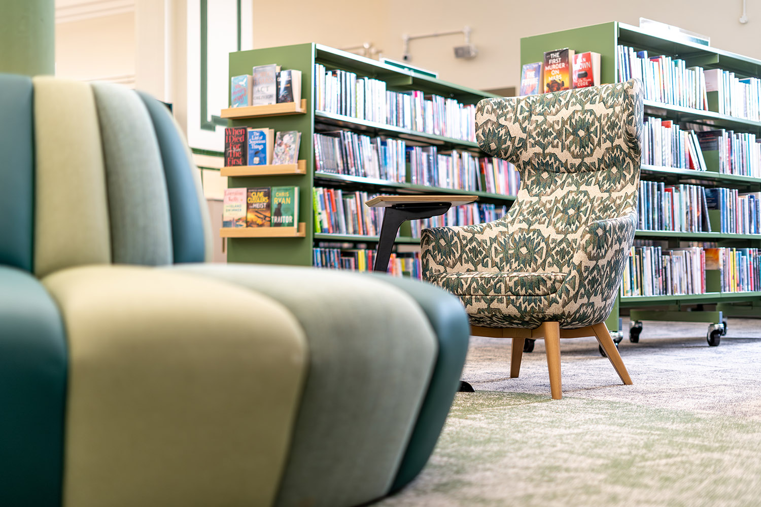 Le design mêle harmonieusement tradition et modernité avec une palette de coloris inspirée du patrimoine et une signalétique d’époque conservée, facilitant l’orientation et la circulation. La configuration flexible des espaces permet d’offrir une variété d’activités, de la lecture individuelle aux travaux de groupes.
