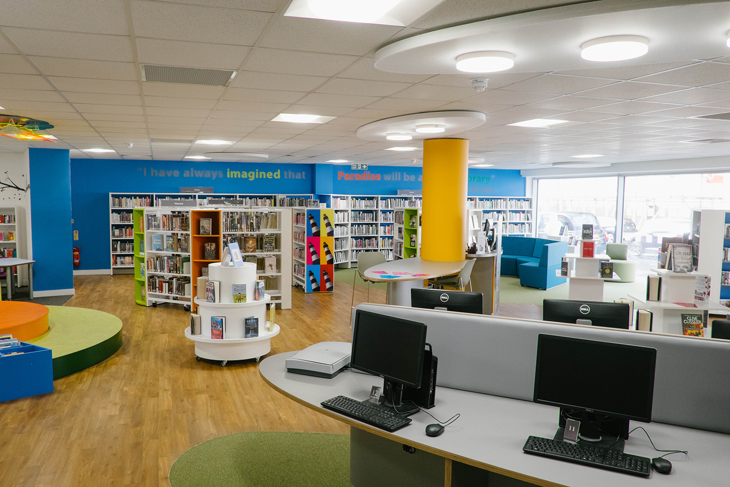 Une bibliothèque à l’accent commercial.