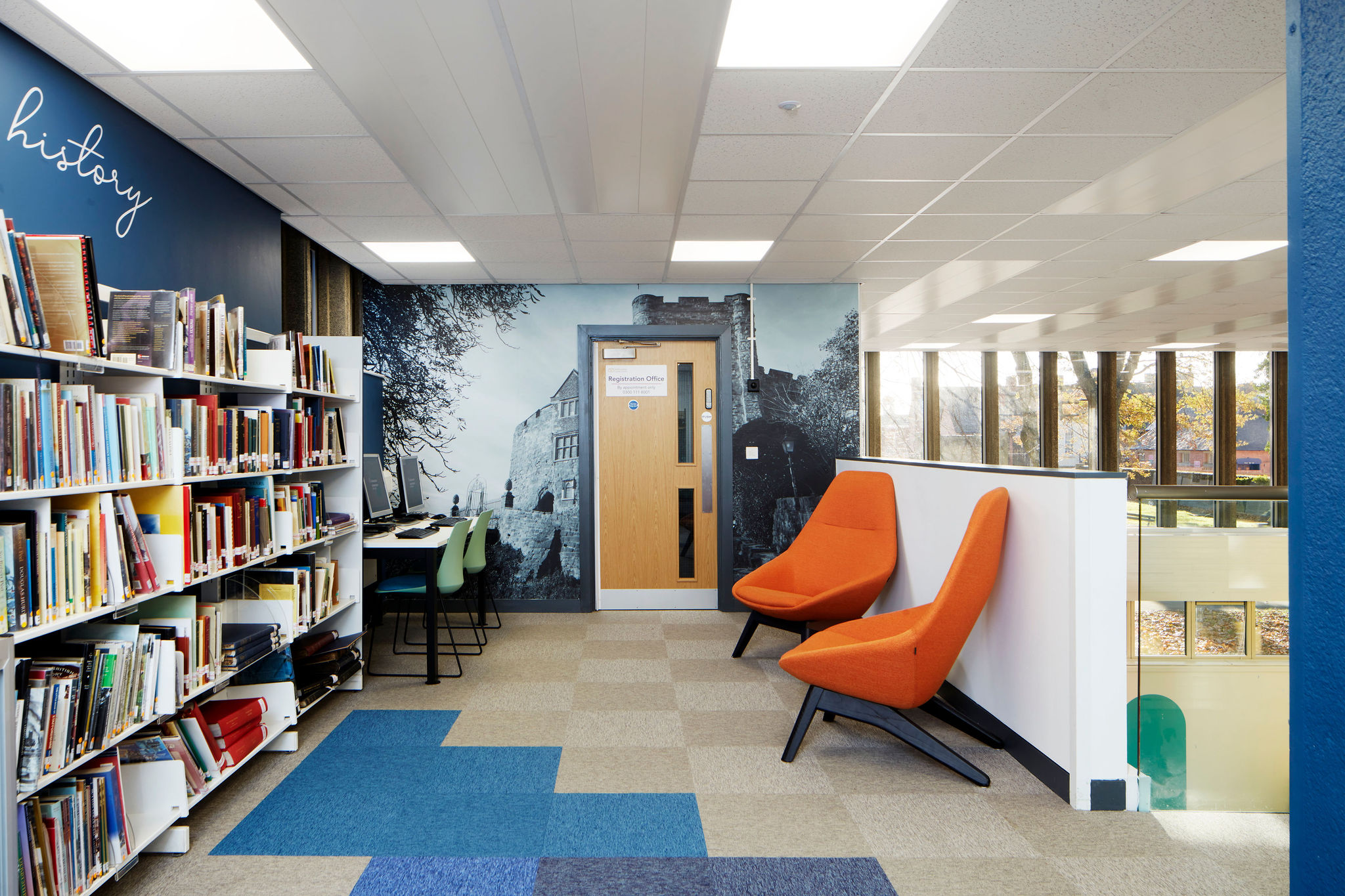 L’espace patrimonial est superbe. Il est conçu pour faire honneur à la riche histoire de Tamworth et pour mieux la découvrir. La grande fresque photographique consacrée au château de Tamworth évoque un sentiment de nostalgie et de fierté pour les habitants, tout en adressant un message bienveillant aux visiteurs de la bibliothèque.