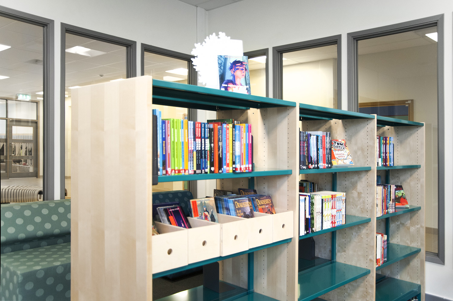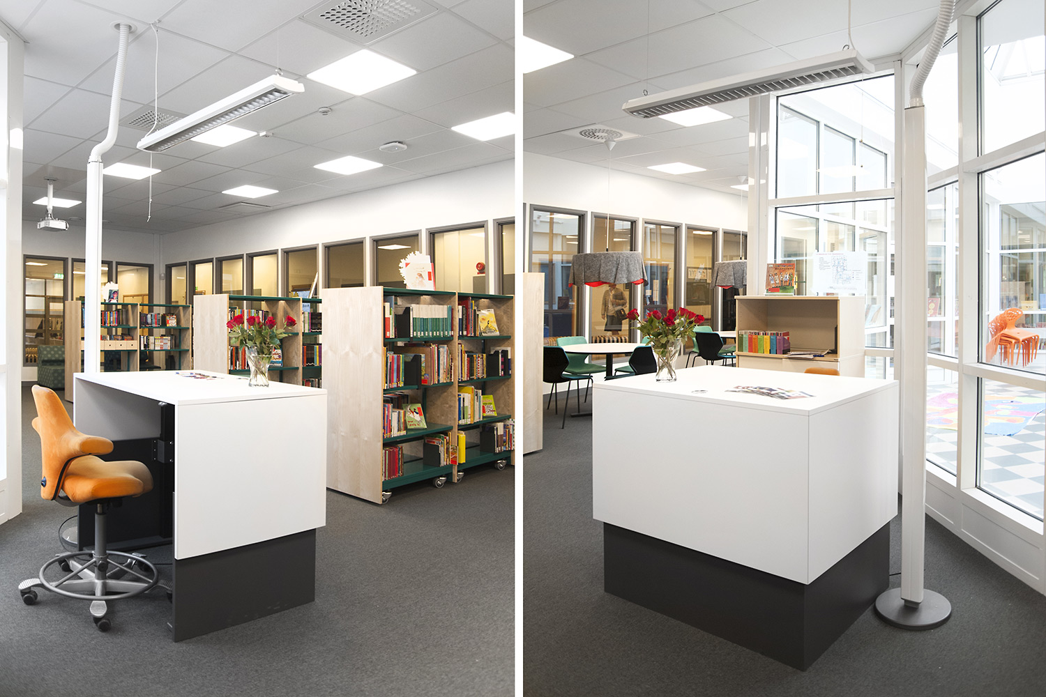 L’école de Rosengård, à Malmö, accueille 300 élèves de la maternelle à la sixième année. Le bâtiment a été construit en 1972 et la bibliothèque a récemment déménagé pour jouir désormais d’une position centrale au sein de l’école et être ainsi plus proche des élèves, jeunes ou moins jeunes.