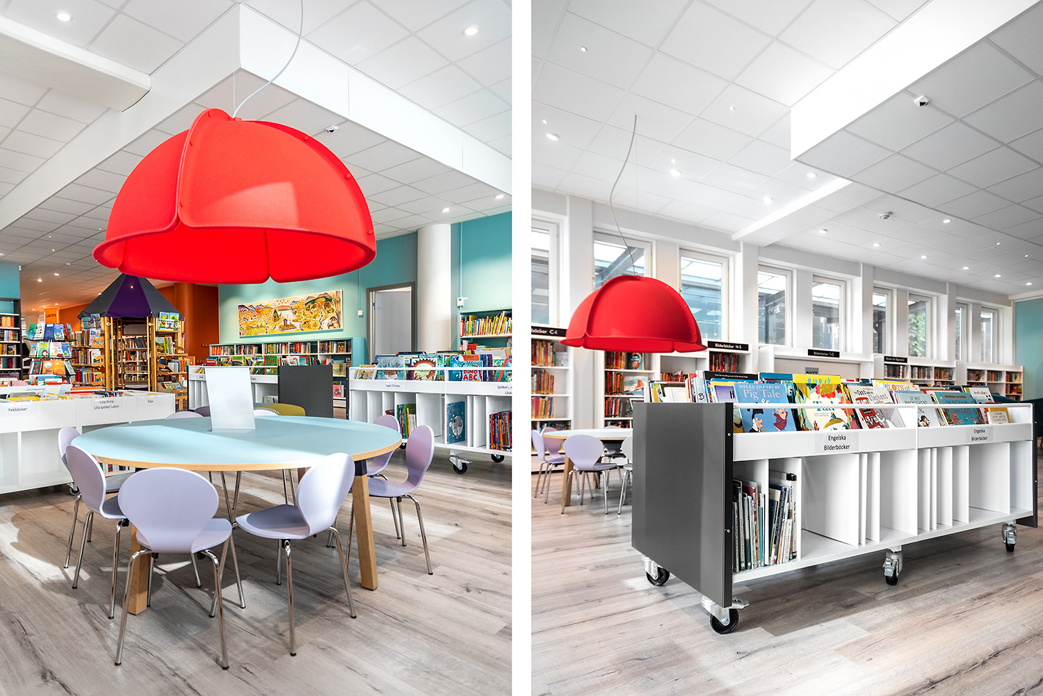 Produits utilisés à la Bibliothèque municipale de Täby, Suède