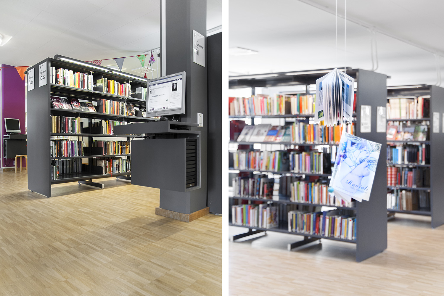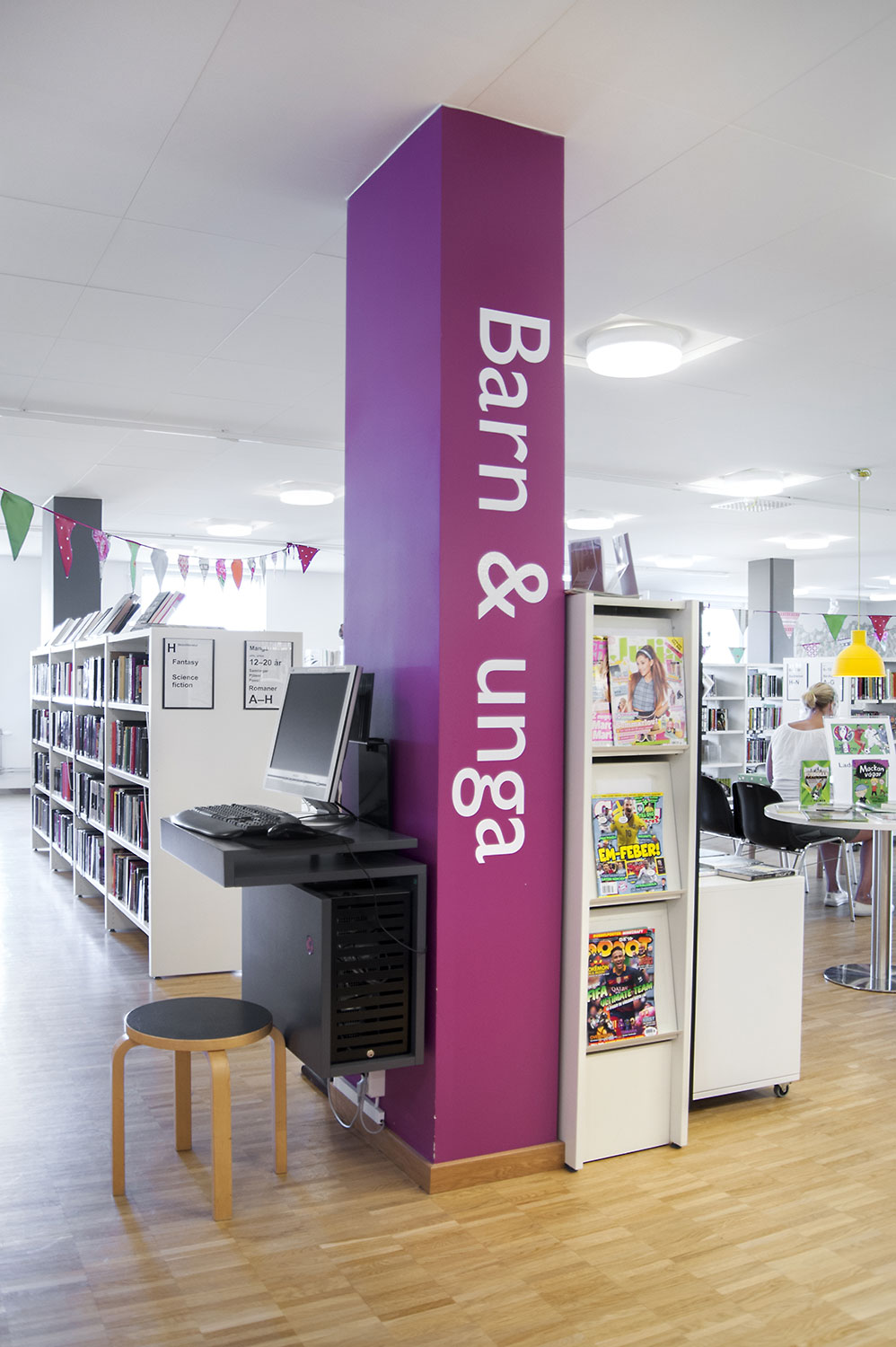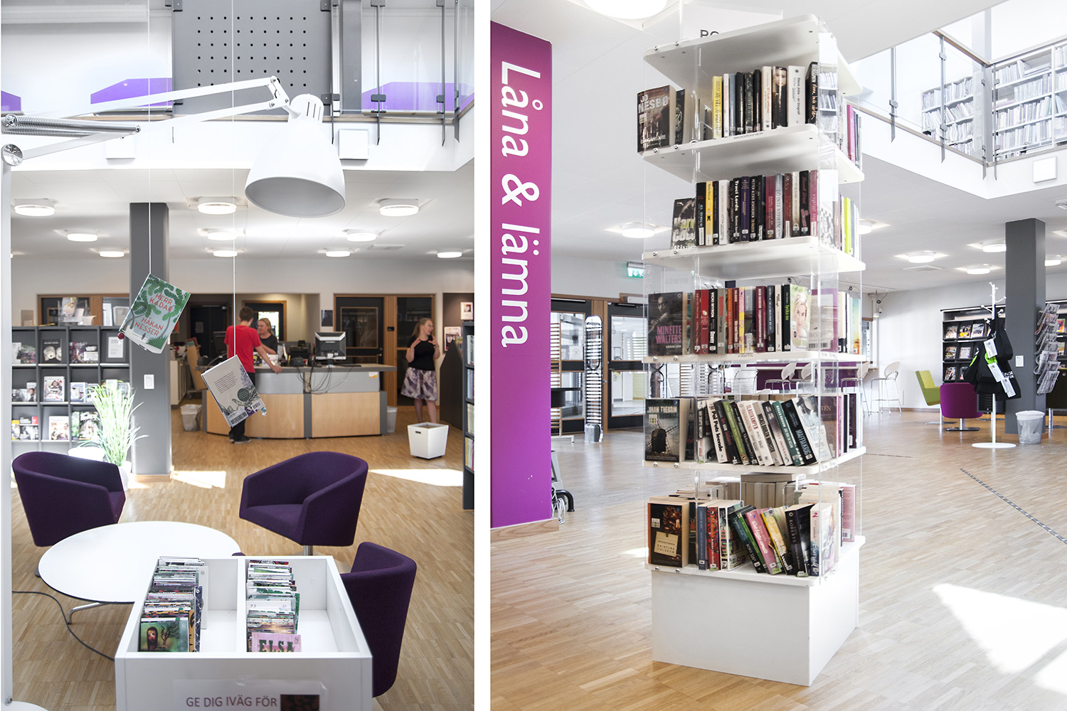 Cette bibliothèque est à la fois une bibliothèque publique et une bibliothèque scolaire intégrée à la Sunds High School de la municipalité de Vellinge. Son caractère spacieux et l’opportunité de pouvoir à la fois y étudier et se détendre en font un excellent environnement de travail pour les étudiants et les citoyens.