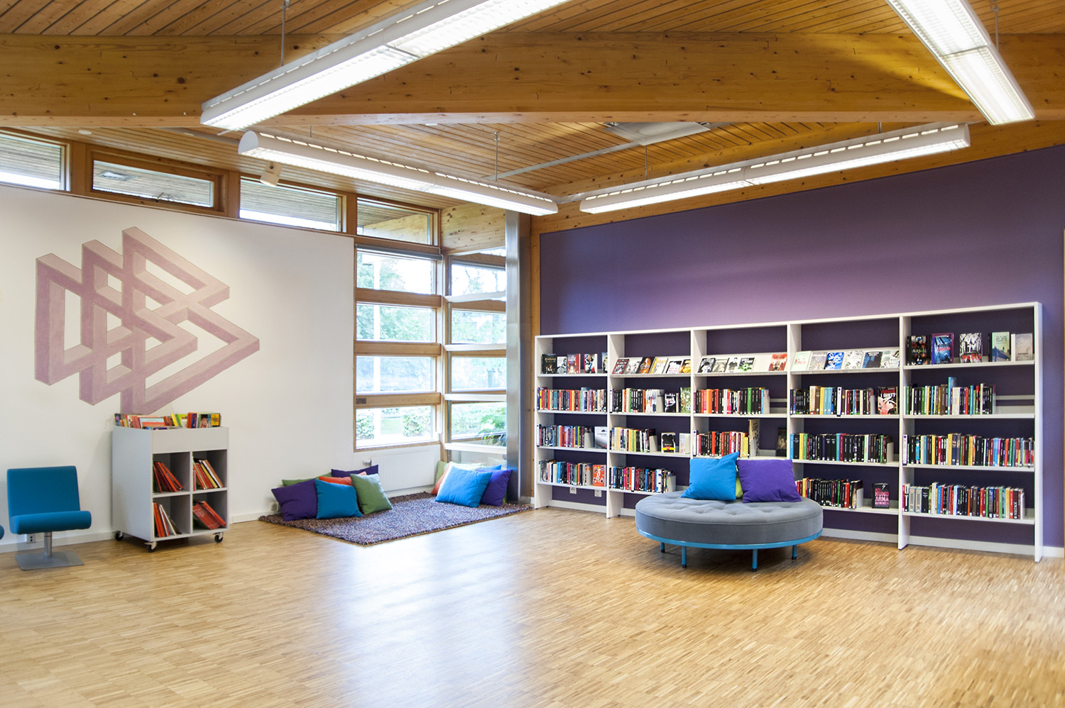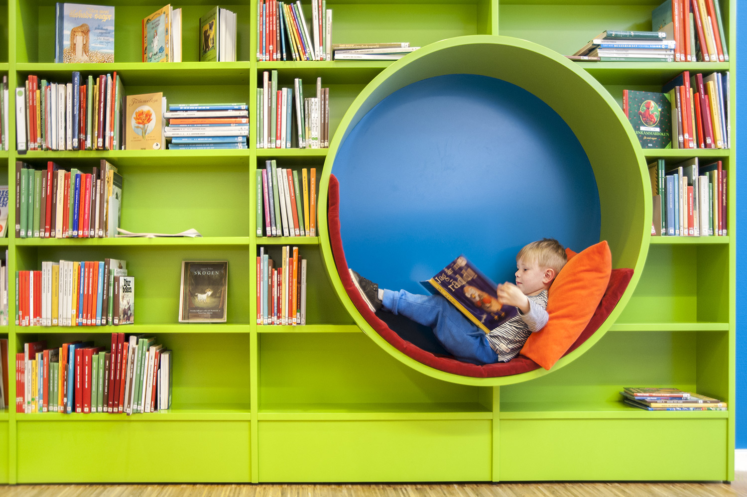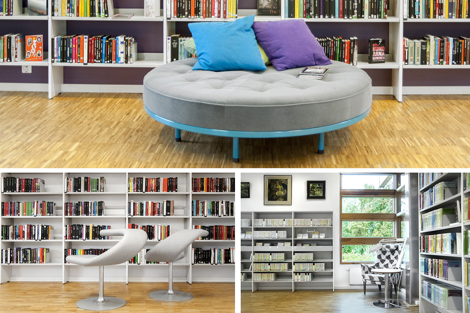 La bibliothèque publique d’Ystad est l’espace culturel et de rencontre le plus fréquenté de la ville. Le bâtiment, conçu par l’architecte Claes B Persson, a été inauguré en 1983 et rénové en profondeur en 2016. La bibliothèque a mis l’accent sur l’aménagement d’une nouvelle section enfants attrayante pour les jeunes utilisateurs. Cet espace comprend un grand système de rayonnages aux couleurs vitaminées avec des sièges intégrés pour que les utilisateurs puissent s’installer confortablement pour lire, ainsi que d’autres sièges et coins cosy où les enfants et les ados peuvent se détendre.