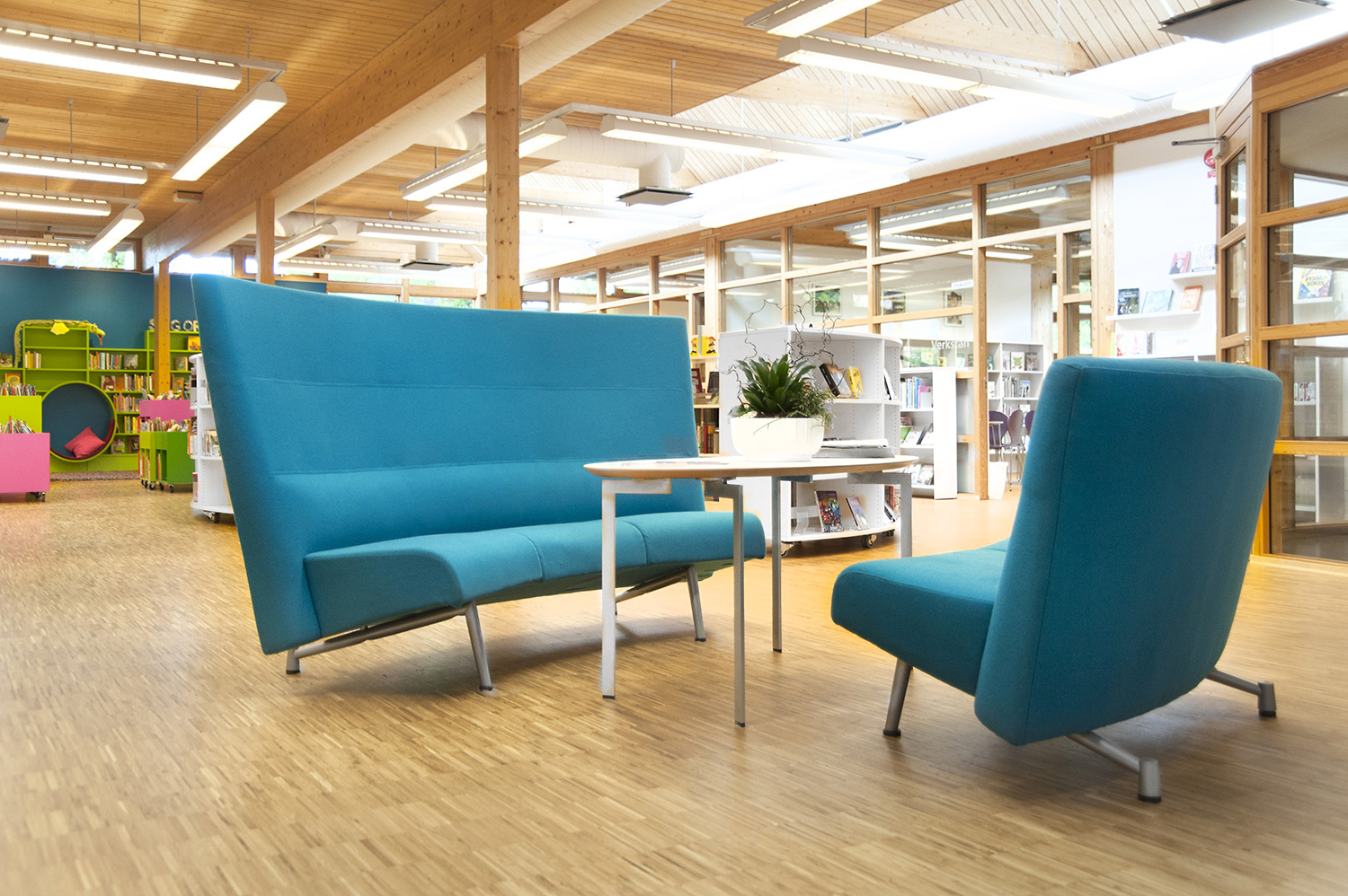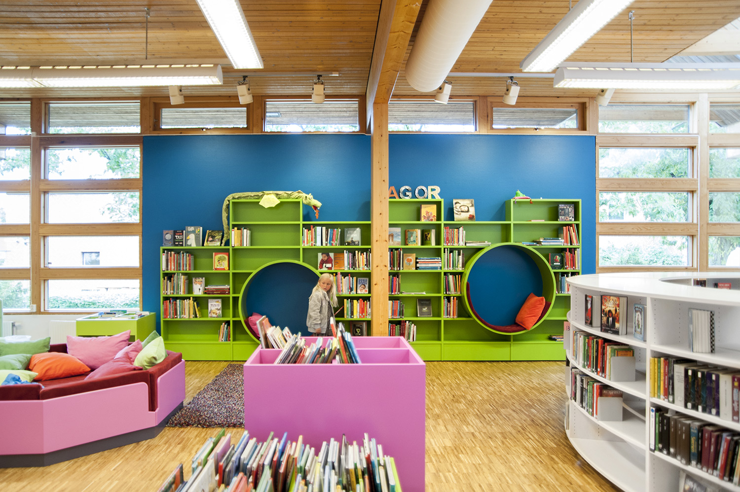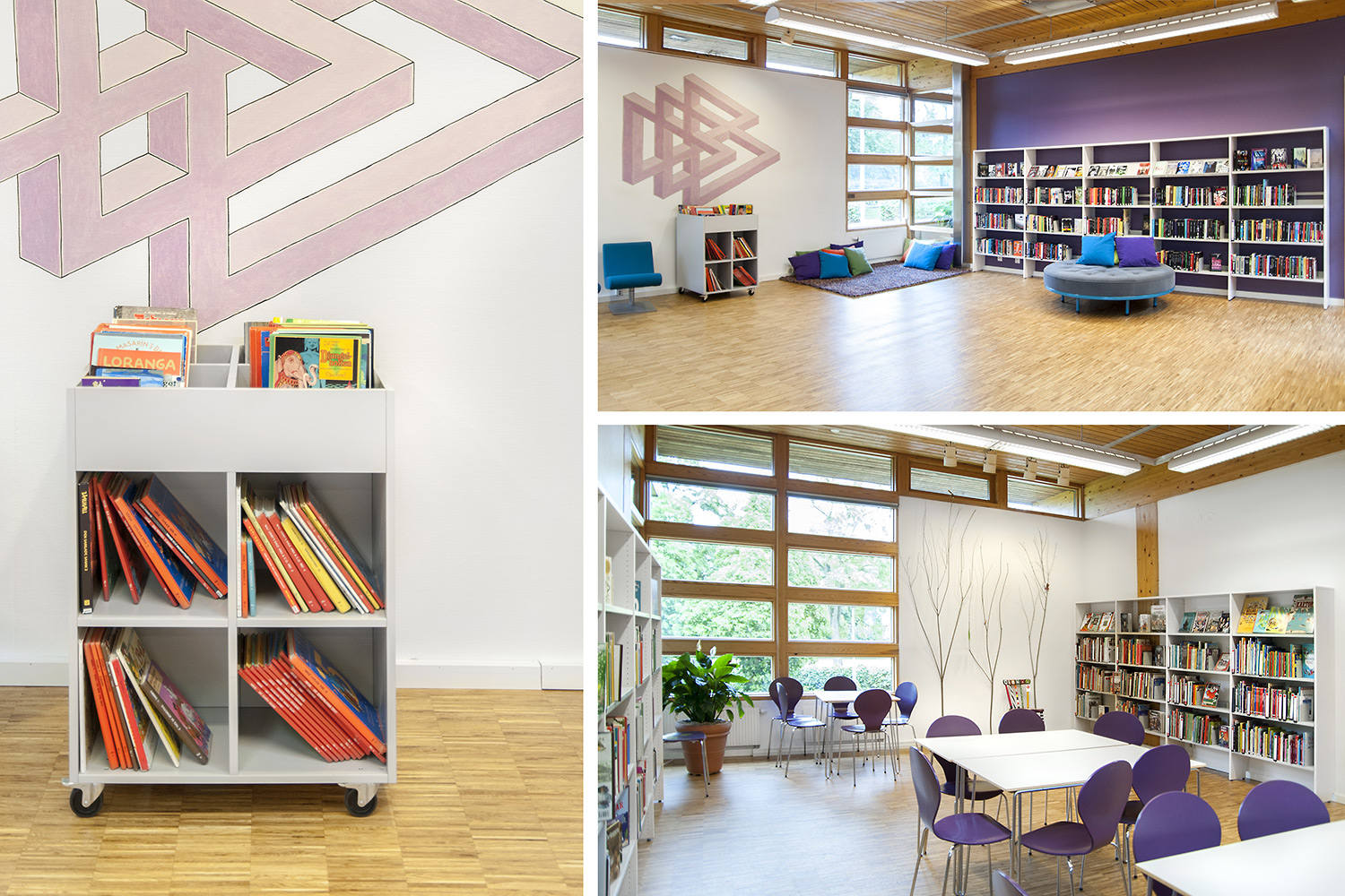 La bibliothèque publique d’Ystad est l’espace culturel et de rencontre le plus fréquenté de la ville. Le bâtiment, conçu par l’architecte Claes B Persson, a été inauguré en 1983 et rénové en profondeur en 2016. La bibliothèque a mis l’accent sur l’aménagement d’une nouvelle section enfants attrayante pour les jeunes utilisateurs. Cet espace comprend un grand système de rayonnages aux couleurs vitaminées avec des sièges intégrés pour que les utilisateurs puissent s’installer confortablement pour lire, ainsi que d’autres sièges et coins cosy où les enfants et les ados peuvent se détendre.