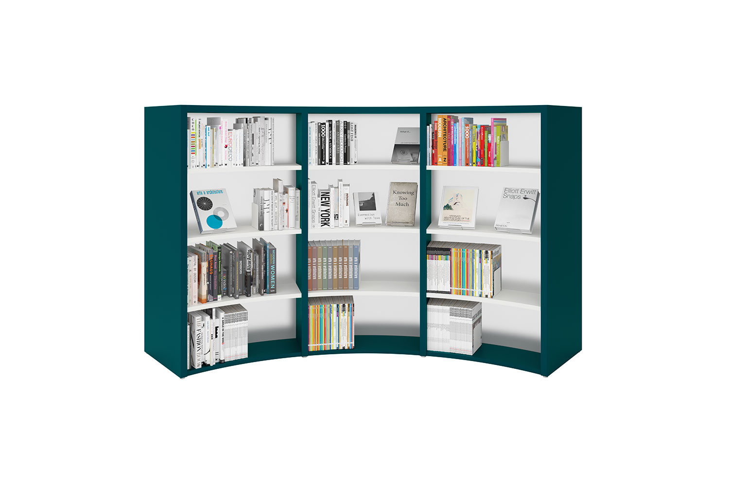 Polyvalence et plaisir sont les termes qui qualifient le mieux le rayonnage Inform courbe.