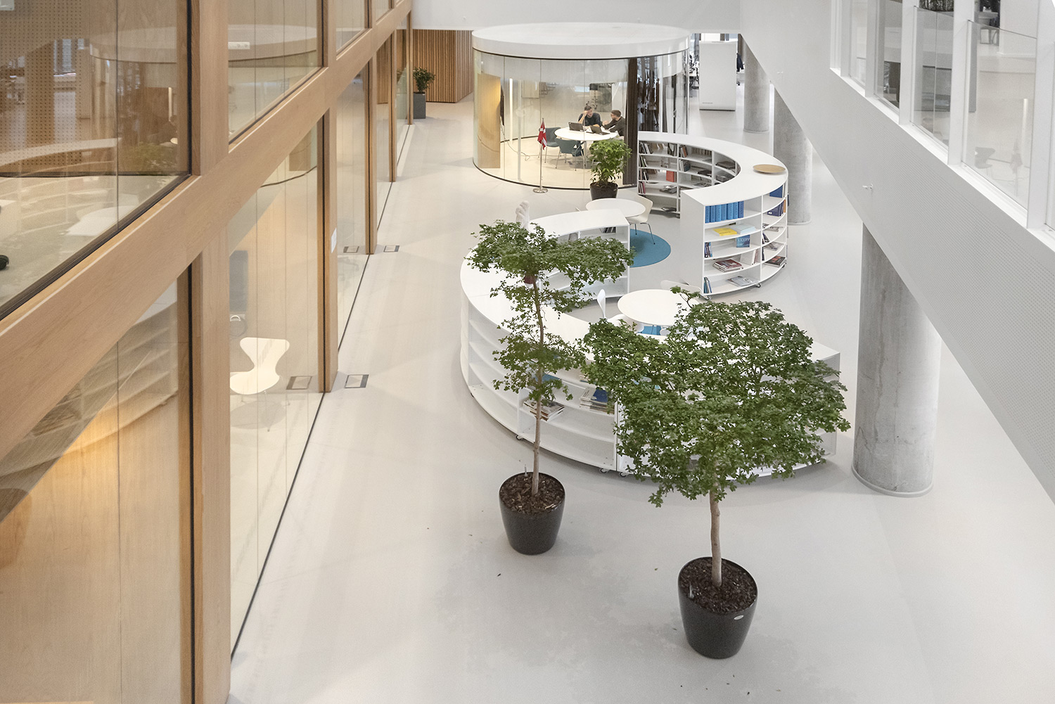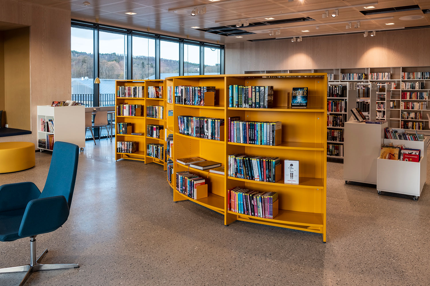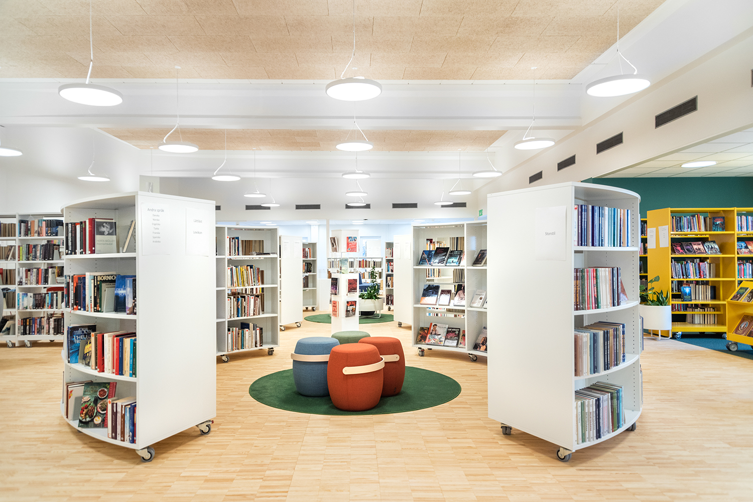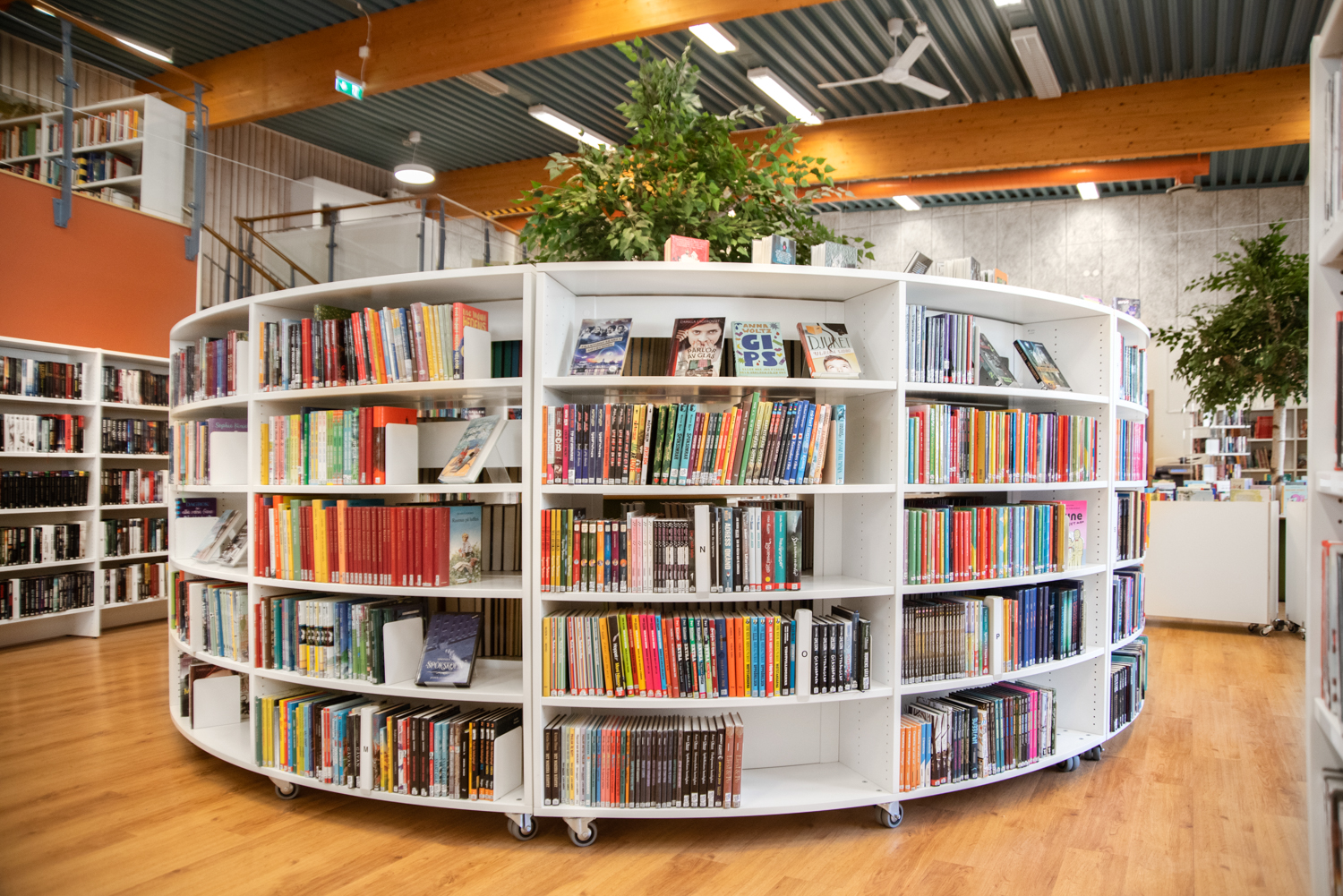 Le rayonnage courbe Slimline/Frontline ouvre un nouvel univers de présentation et de rangement des imprimés. Il vous permet de créer de petites Zones de lecture ou des îlots thématiques propices aux lecteurs pour s’isoler. Ce système vous permet de créer des cercles presque complets ou des agencements en S dans votre bibliothèque.
