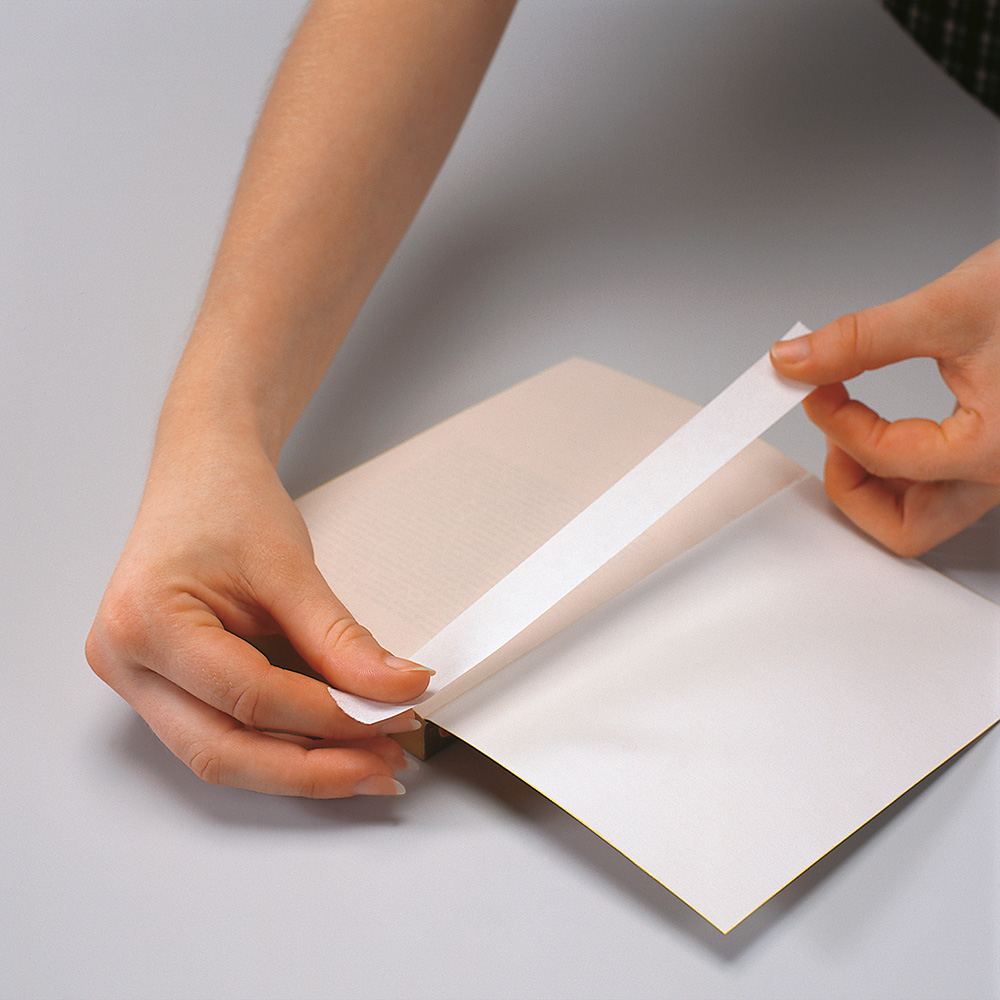Papier autocollant, transparent à fibre longue sans acide et résistant à la déchirure.