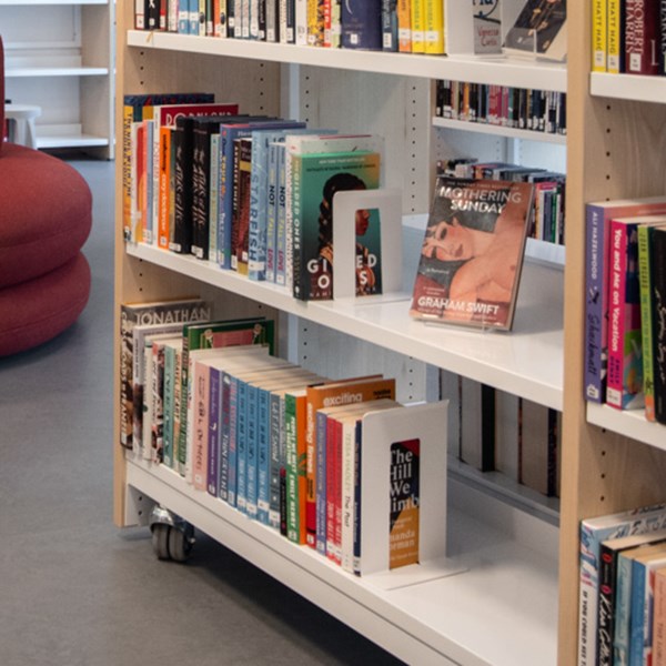 Un serre-livres pratique en tôle robuste laquée avec bord supérieur relevé pour une bonne maniabilité.