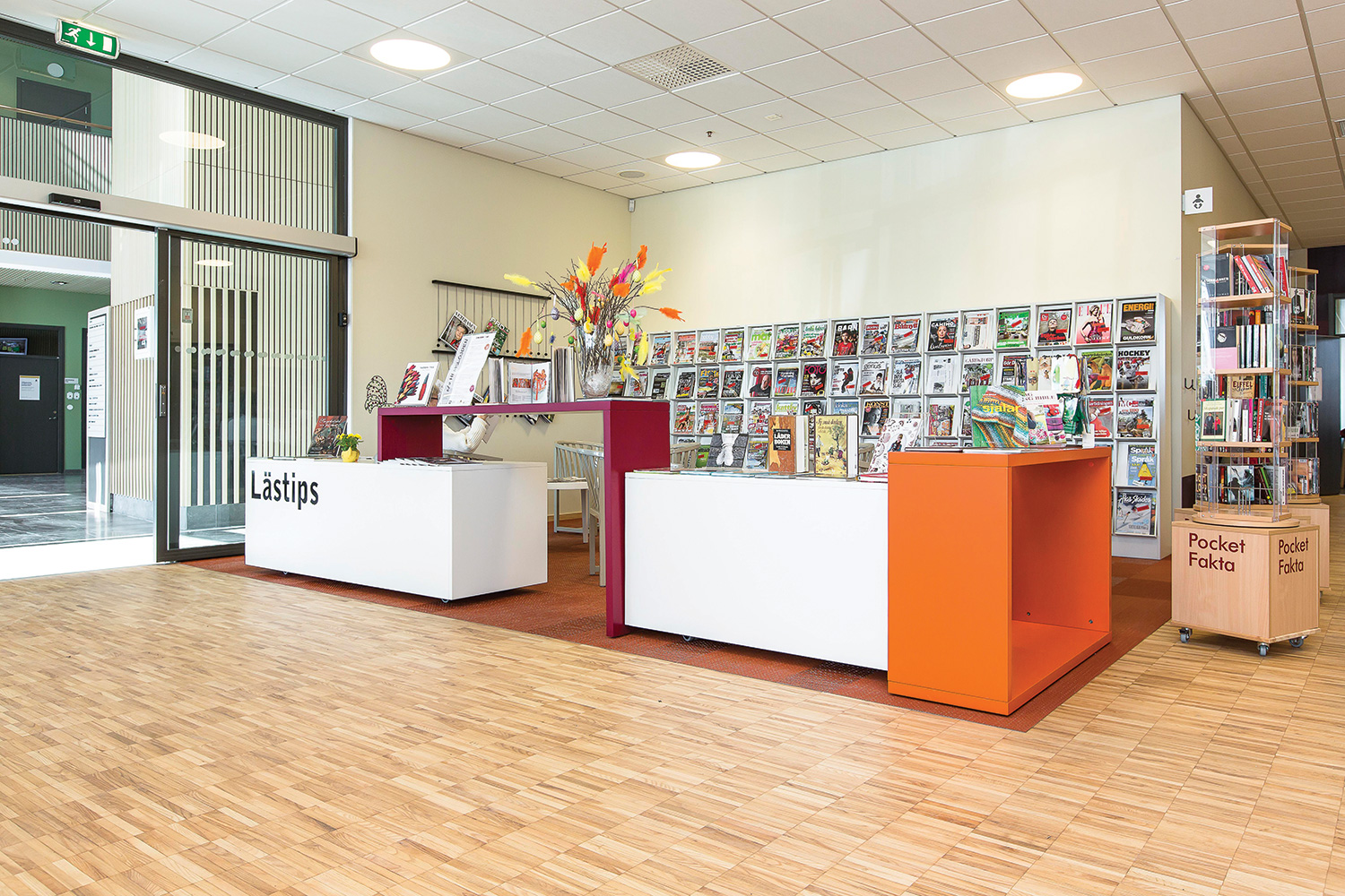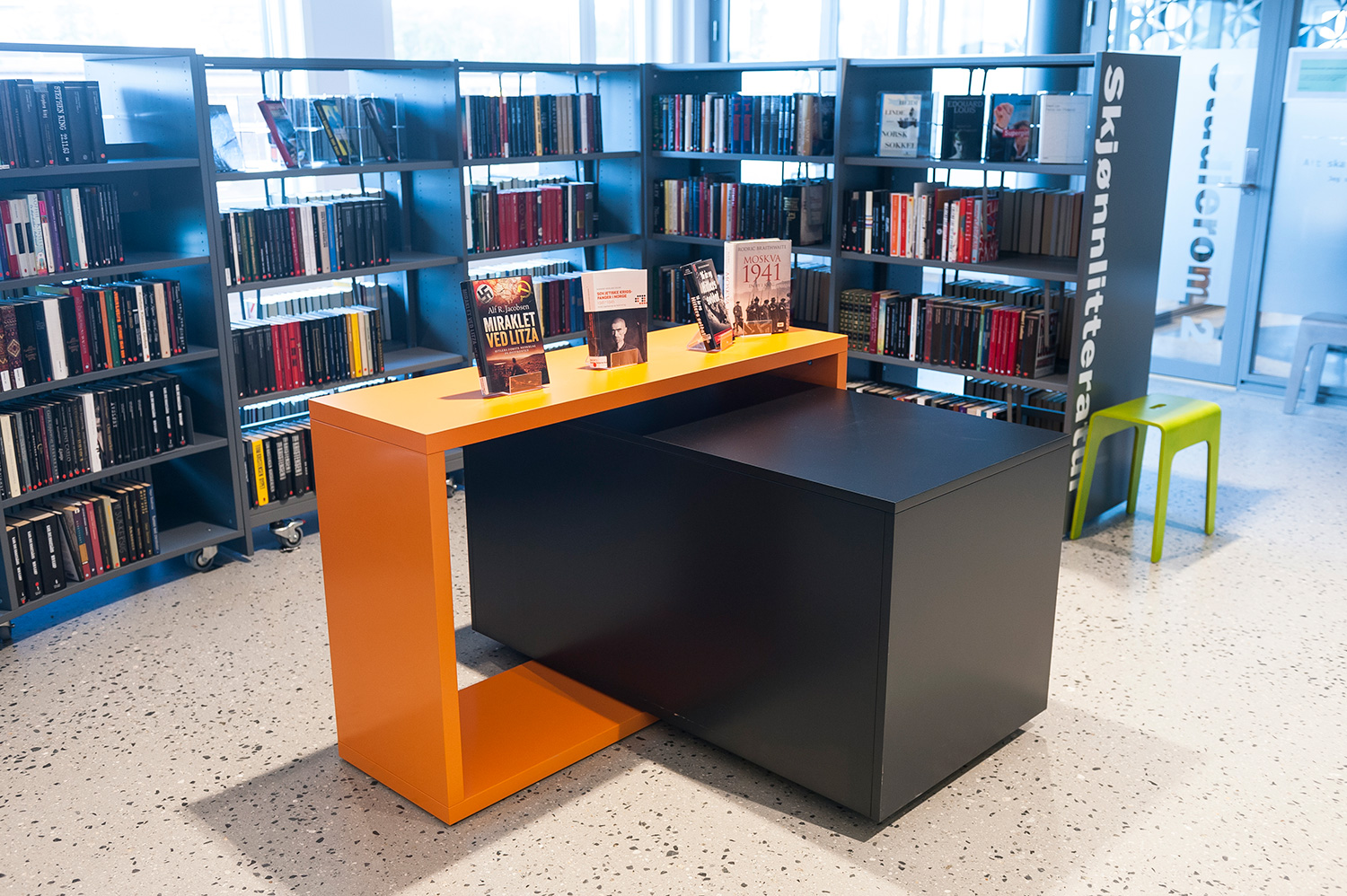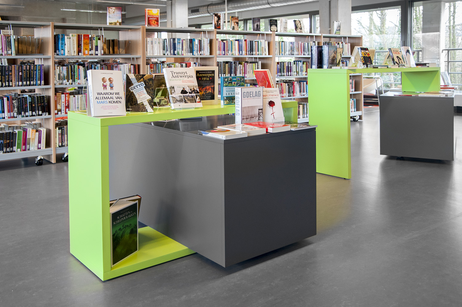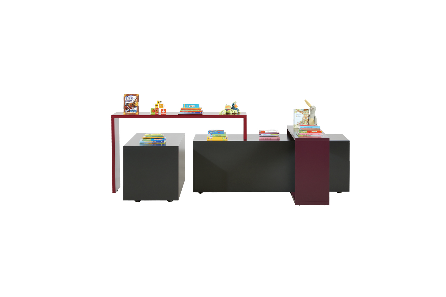 La gamme Showit se compose de quatre éléments modulables aux nombreuses possibilités de combinaison afin de pouvoir répondre à vos besoins et critères esthétiques. Son design minimaliste et flexible convient parfaitement à chaque bibliothèque et offre de nouvelles opportunités de présentation. Ce mobilier est idéal pour l’exposition et la mise en valeur des splendides couvertures des dernières nouveautés disponibles dans votre bibliothèque. Il peut aussi être utilisé pour la création de présentoirs à thème combinant des livres et des objets apparentés.