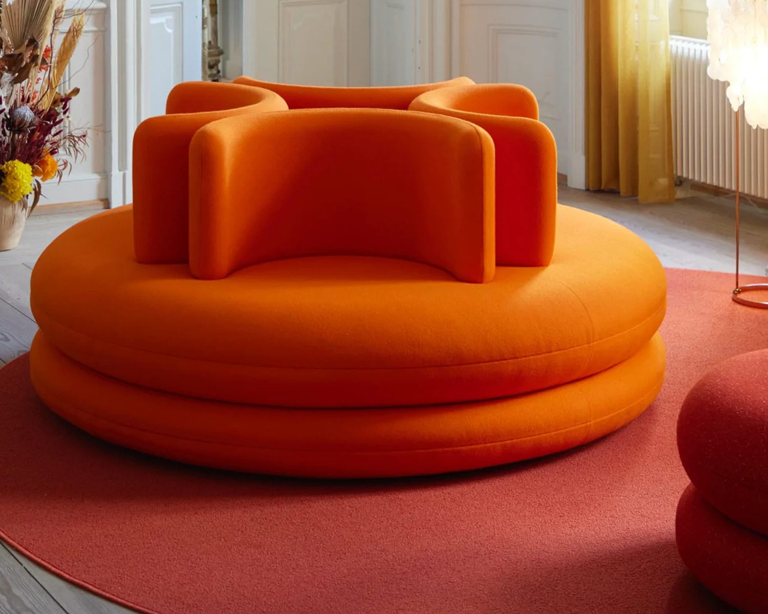 Le sofa Easy est l’une des pièces les plus emblématiques et ludiques des créations de Verner Panton. Il offre, avec ses formes arrondies et élégantes, quatre sièges individuels dotés d’un grand confort d’assise. En complément, le fauteuil Easy est conçu également avec des formes rondes, une assise généreuse et un large dossier en forme de U qui fait aussi office d’accoudoir selon la position adoptée.