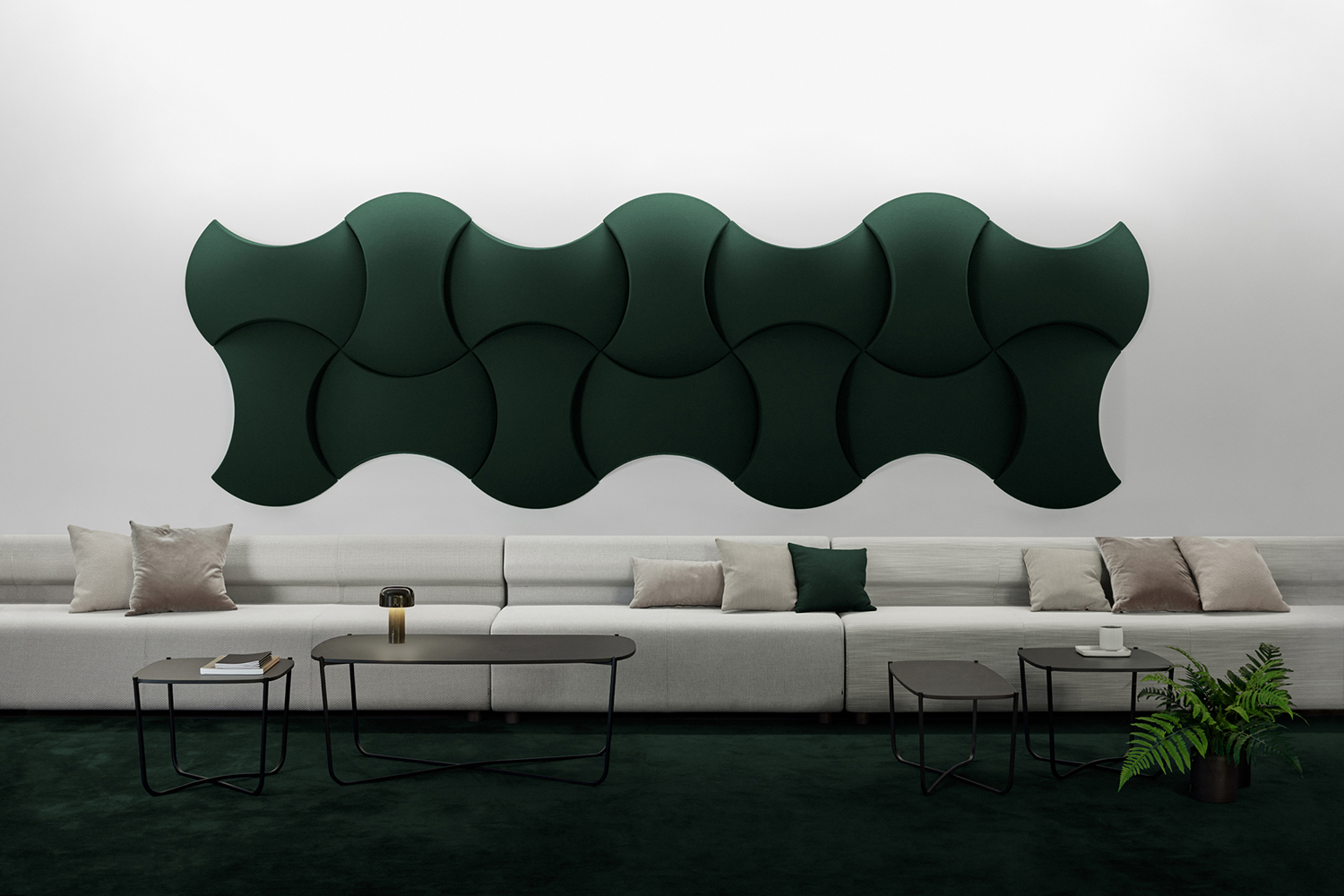 En disposant les modules en groupes, on crée des motifs ondulants à la manière de formations nuageuses. Comme les nuages, les groupes invitent à la contemplation et à la réflexion. Créez votre propre effet visuel !
