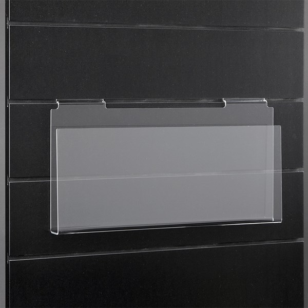 Une collection de supports de présentation en acrylique adaptés aux panneaux d’affichage avec lattes et à la tour Quattro.