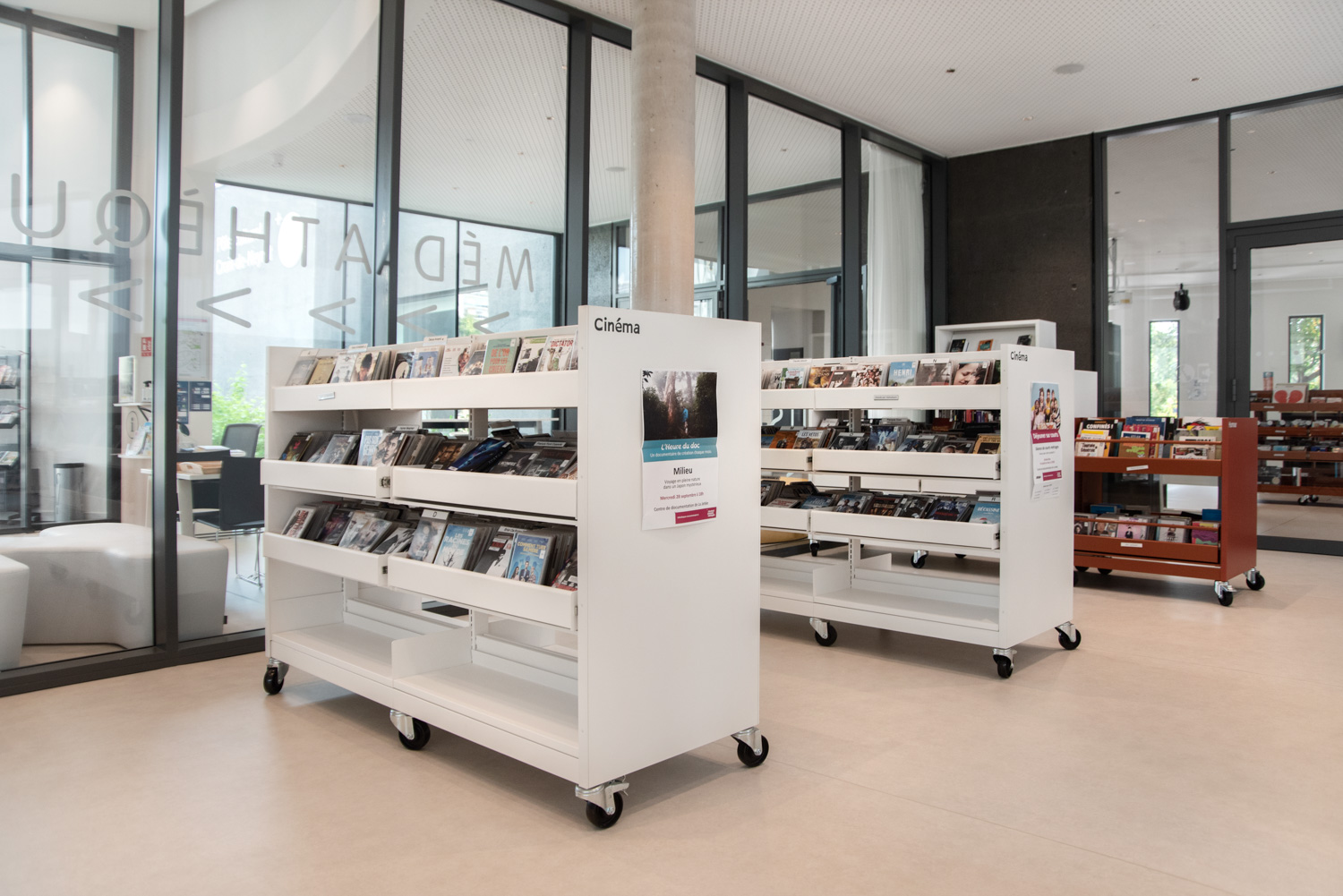 Les rayonnages 60/30 Classic sont disponibles en plusieurs hauteurs et peuvent être équipés de roulettes visibles ou invisibles pour une meilleure mobilité. Les bacs multimédias à intégrer sont disponibles en version fixe ou télescopique et sont dotés d'un tapis en caoutchouc rainuré qui maintient les livres en position verticale. Des séparateurs réglables sont inclus dans chaque bac.