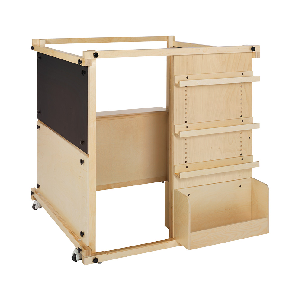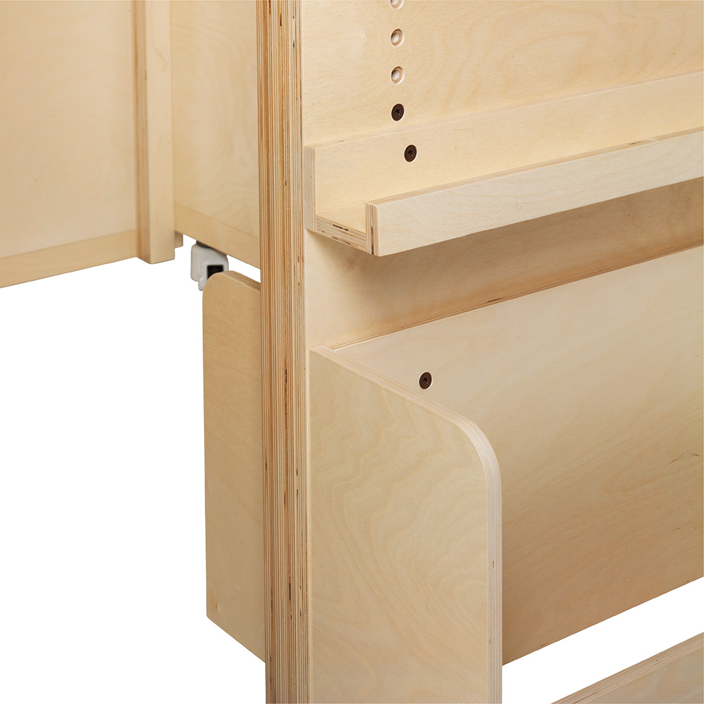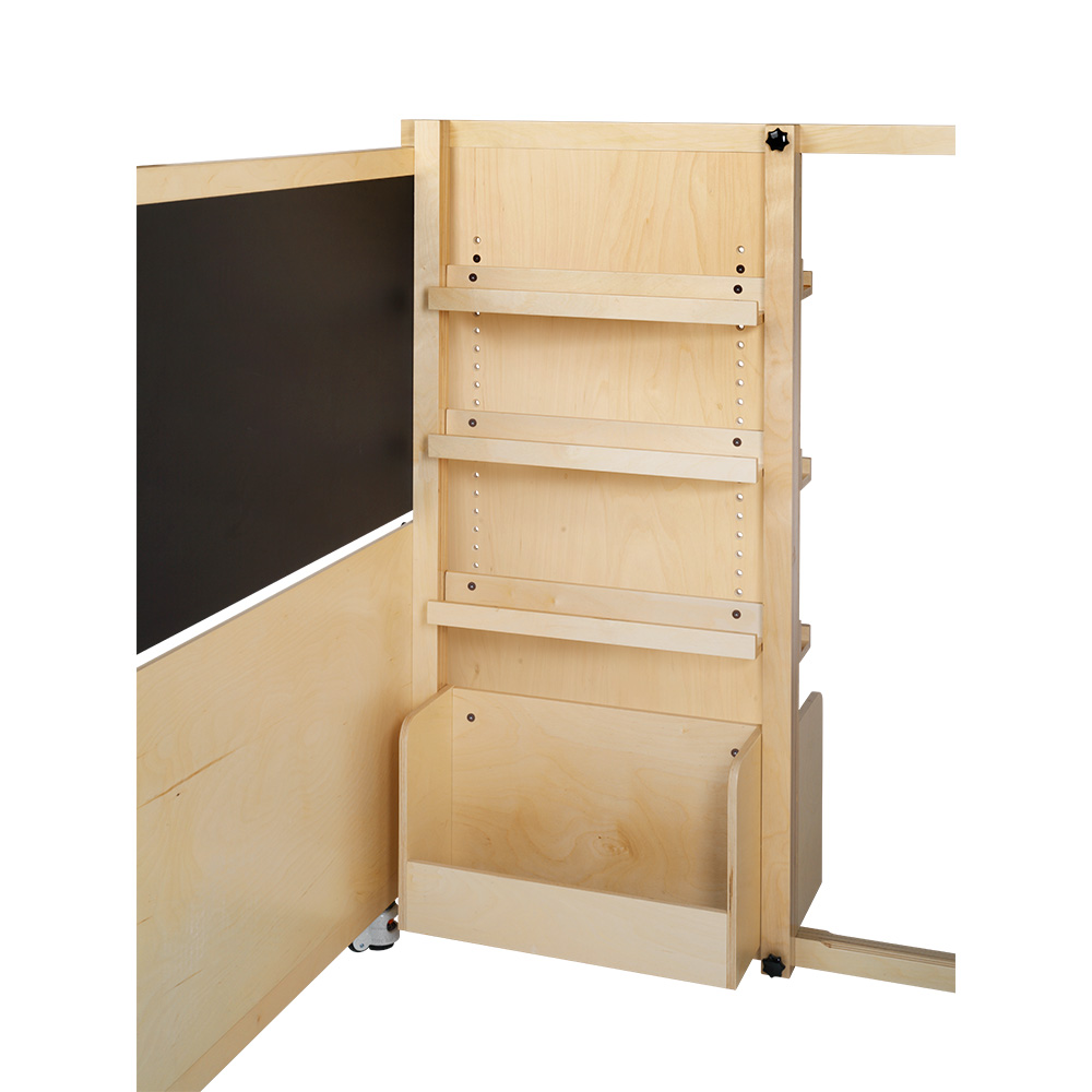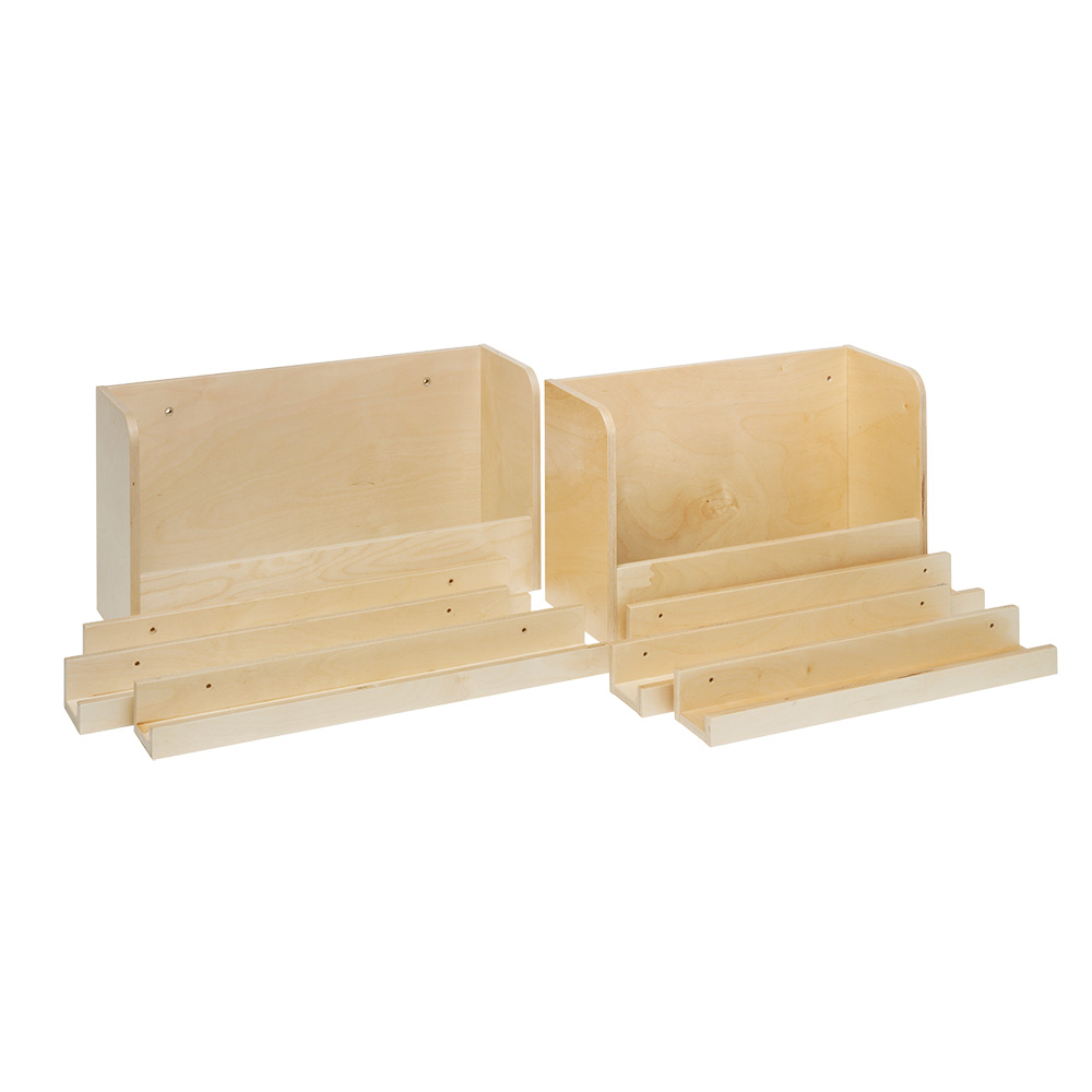 Des tablettes fonctionnelles et des bacs à albums pour le stockage et l'affichage des livres supplémentaires.