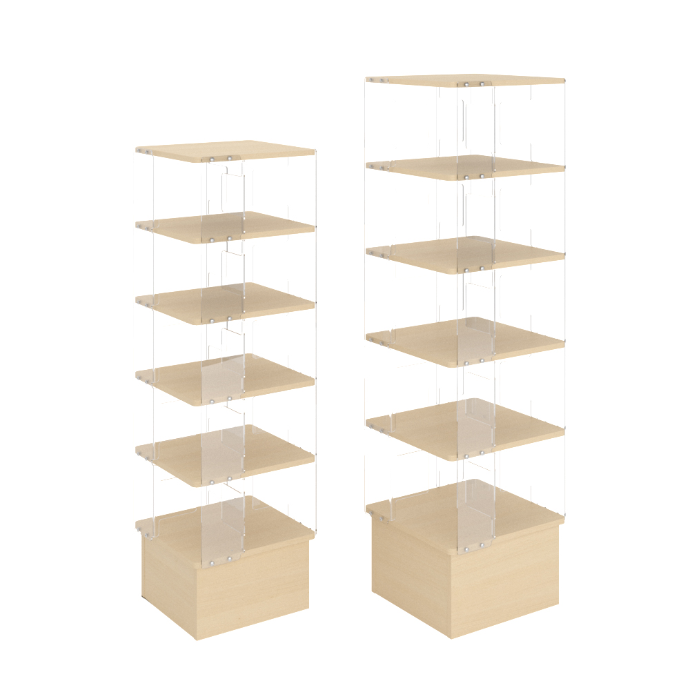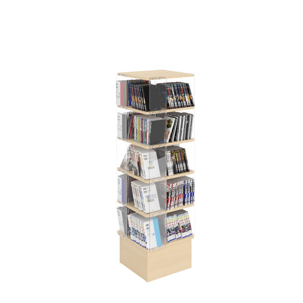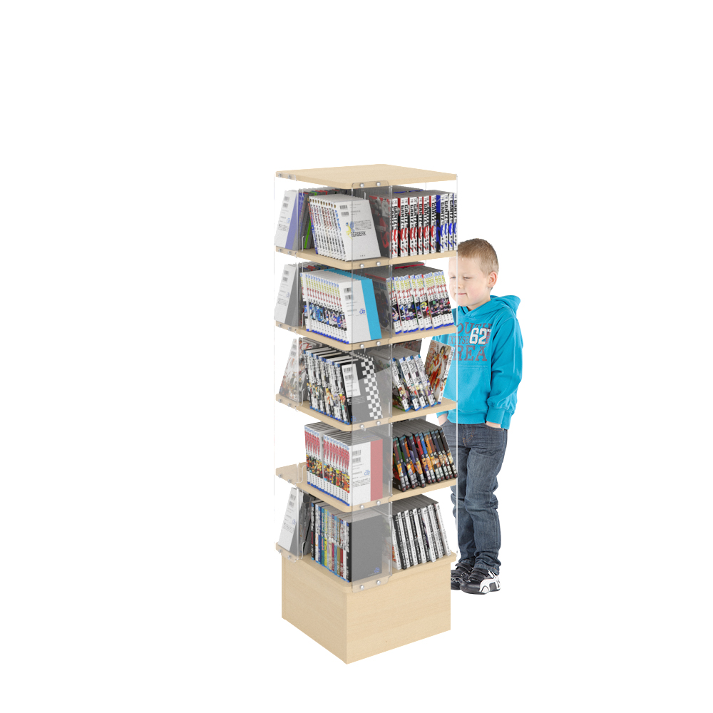 Tour avec cinq étagères divisées chacune en quatre compartiments.