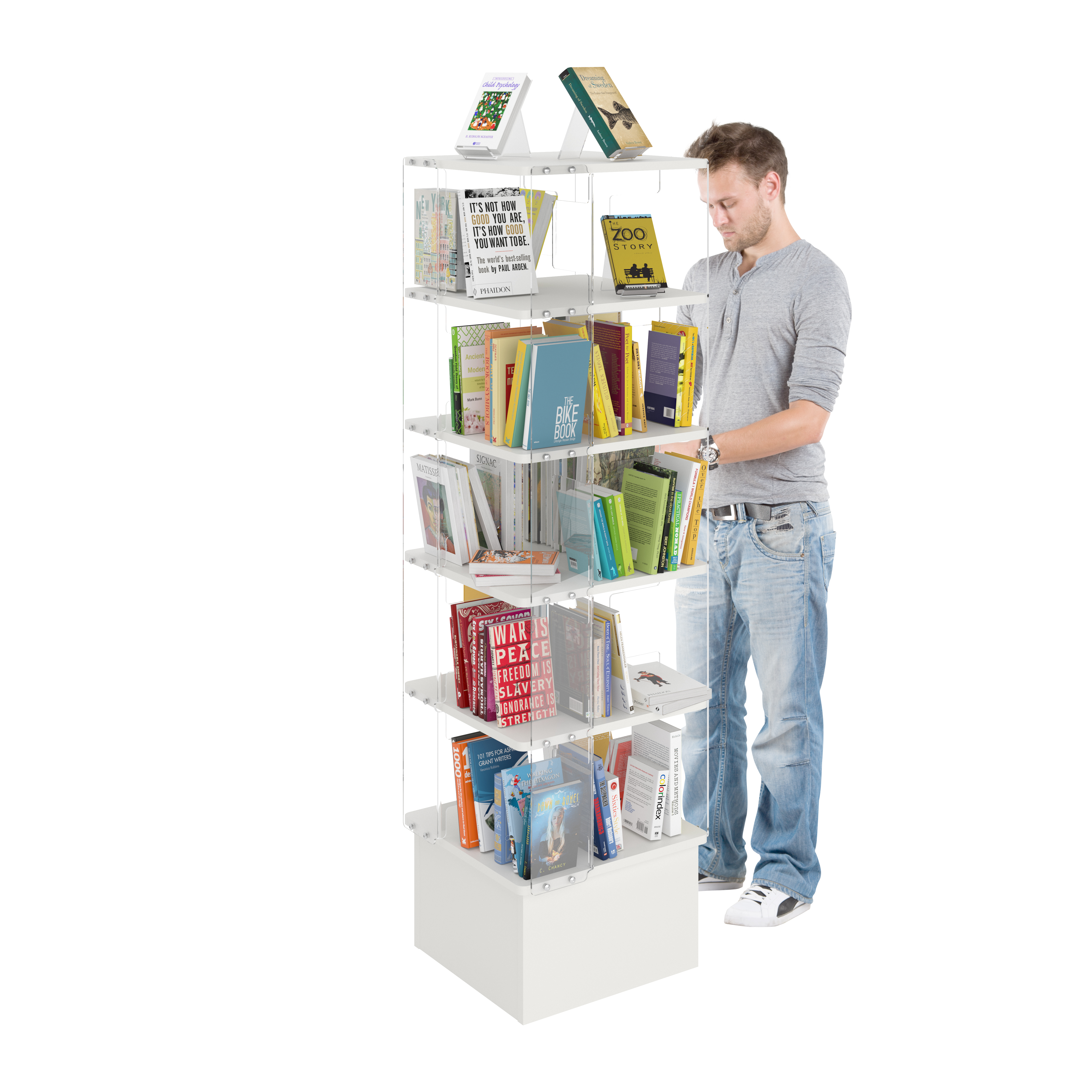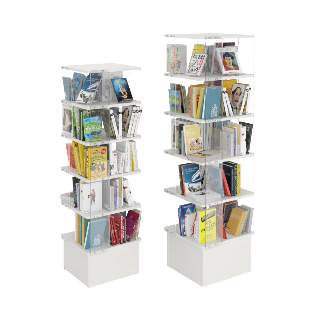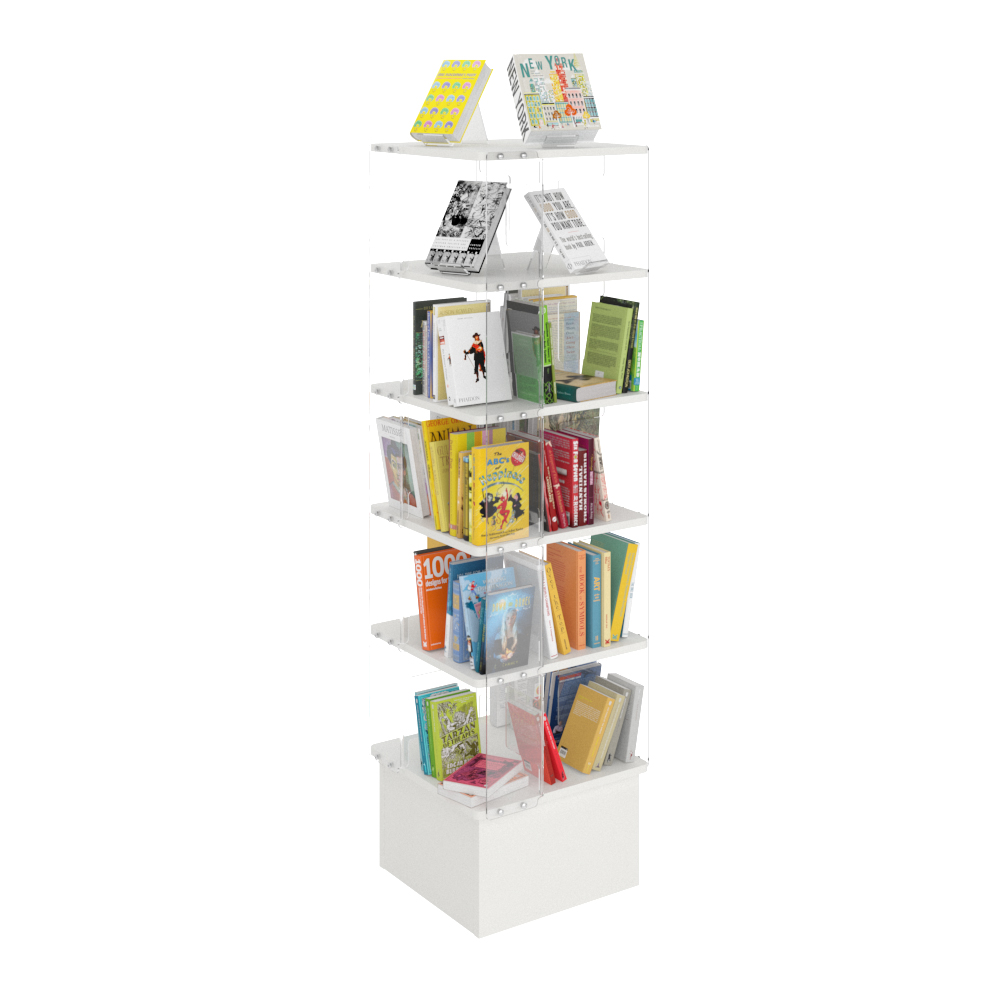 Tour avec cinq étagères divisées chacune en quatre compartiments.
